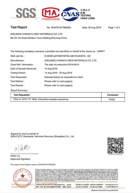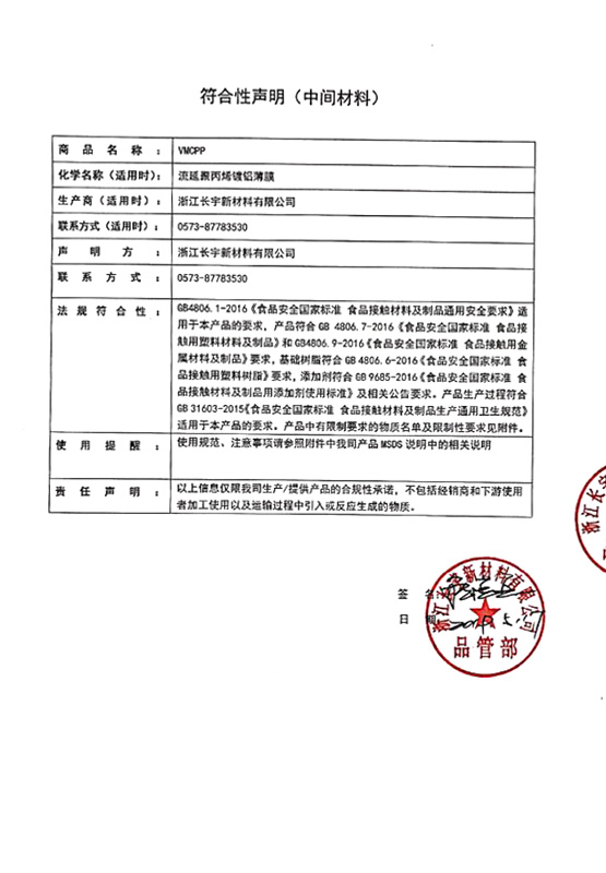 Changyu는 중국 시장에서 "포장을위한 투명 알루미늄 필름"의 선구자이자 옹호자이며, 우리는이 제품의 개발 및 홍보를 위해 끊임없는 노력을 기울였으며, Changyu는 또한 지속적인 주요 국가 표준 프로젝트 "식품 포장 용 필름과 파우치의 품질 일반 규칙"이기도합니다.